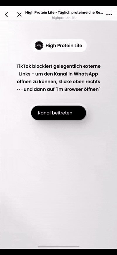 TikTok blockiert externe Links - um den Kanal in WhatsApp öffnen zu können, klicke oben rechts auf · · · und dann auf "im Browser öffnen"